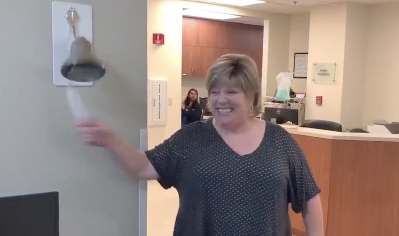 Most hospital patients are excited to ring a “cancer-free bell” once they’ve finished with their medical treatment—but a new video is winning hearts across the internet because of the woman whose Texas-sized excitement was on display.