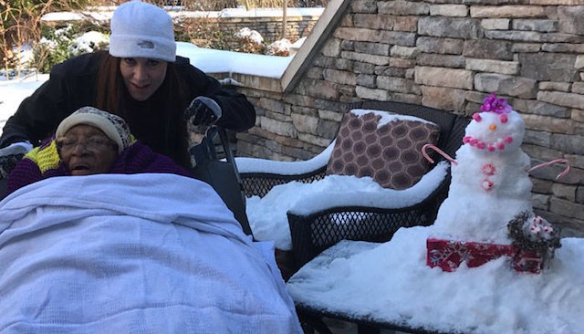 While some people may be cursing the winter storm that hit the East Coast this weekend, these hospice workers used it to grant a woman’s dying wish.