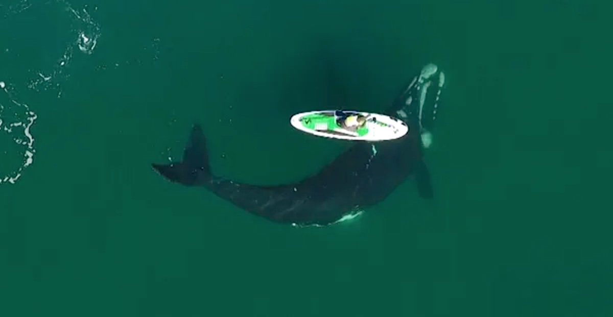 He managed to capture this video of a southern right whale heading towards a paddle boarder, using its fin to gently push her board, then swimming directly beneath.