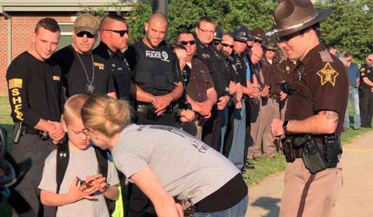 Since Dakota’s father was a police officer at the Terre Haute Police Department in Indiana, the youngster asked his mother if one of his dad’s friends could escort him to school.