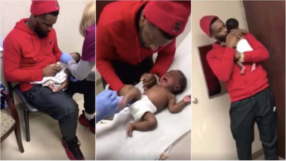 While some parents might be more experienced with taking their kids to the doctor, the video of this first-time father reacting to his newborn son getting his shots is especially emotional.