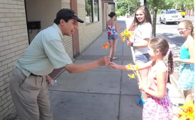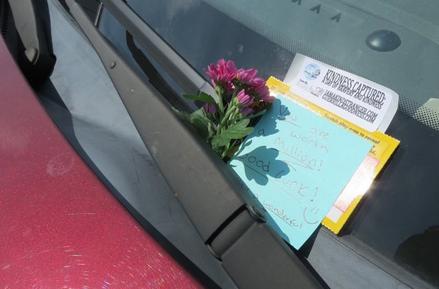 The good deeds ranged from handing out bottles of water, popsicles, and flowers, to paying for people’s coffee, to mailing postcards to random addresses in the phonebook, to leaving lottery tickets under windshield wipers.