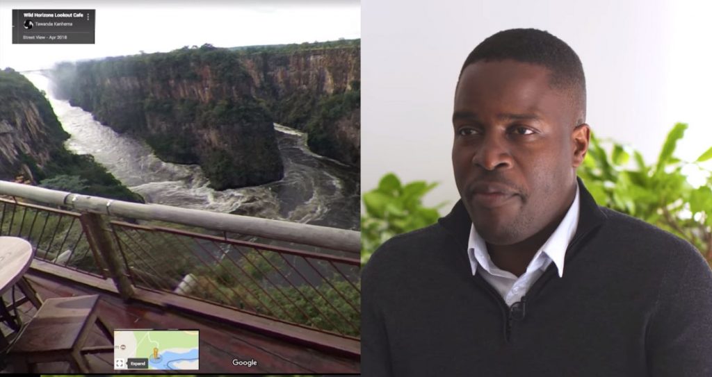 He wound up borrowing a 360-degree camera through Google’s Street View Loan Program and using it in a car as well as on the end of a 4-foot rod attached to his clothing. His trip in 2018 included a safari through a national park, boating down the Zambezi River, shooting Victoria Falls (below), and traversing over 2,000 miles of roads in Harare and other cities—it put Zimbabwe on the map.