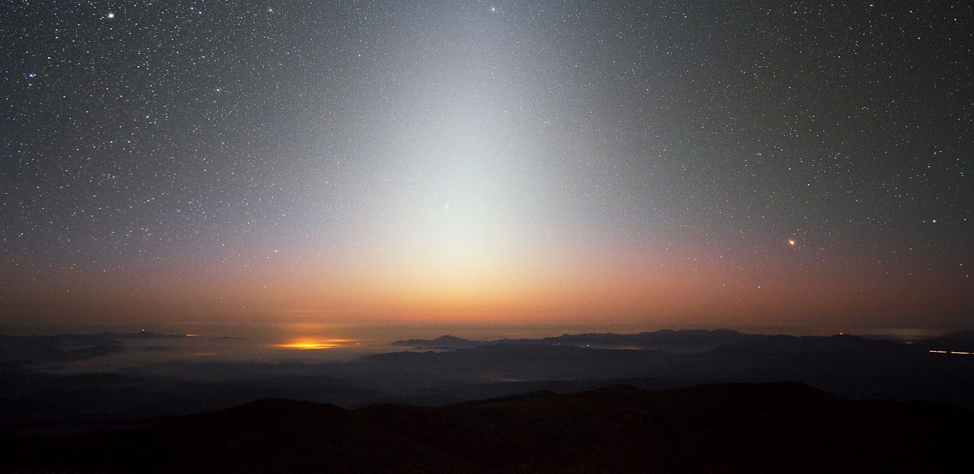 Seen in the Northern Hemisphere just after twilight, according to NASA, what we’re seeing in that faint glow is “sunlight reflected toward Earth by a cloud of tiny dust particles orbiting the Sun.”